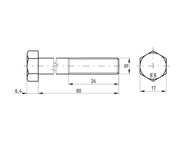 Skrūve DIN931 M10x80 tērauda 8.8