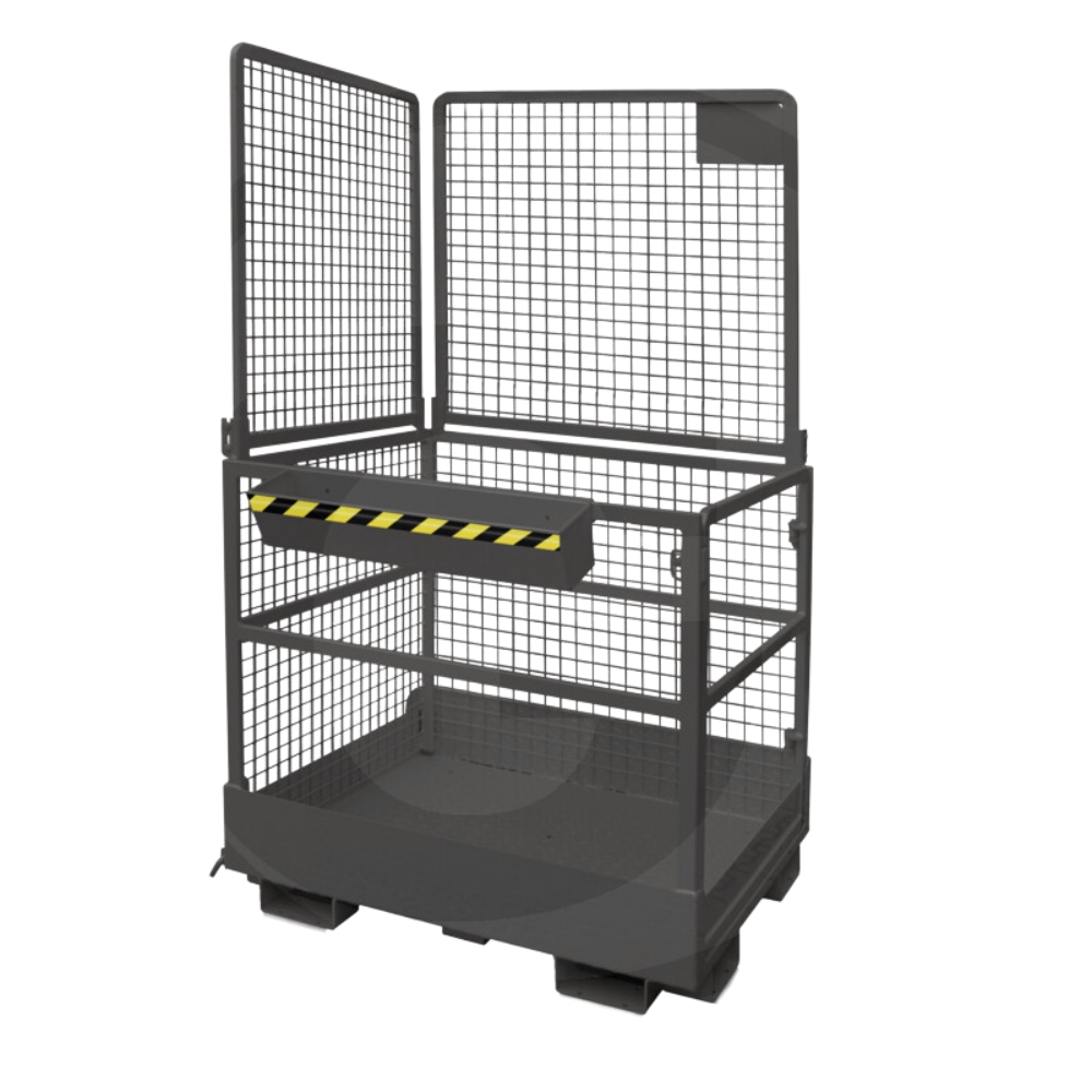 Tehniskie dati: Premium versijai 2 personām var piekļūt no 2 pusēm, un to var izmantot ar frontālo iekrāvēju un krāvēju. Izturīga kvadrātveida caurules konstrukcija ar slēgtu, neslīdošu pamatnes paplāti; ērta ieeja caur durvīm, kas atveras no sāniem; ar instrumentu glabātuvi standarta aprīkojumā. Būvēts saskaņā ar profesionālo asociāciju darba aizsardzības noteikumiem.