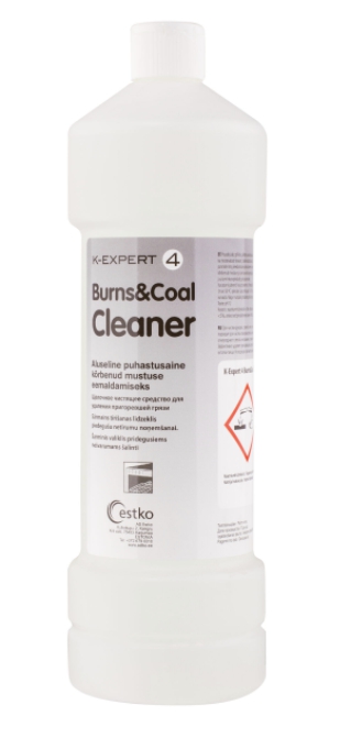 EXPERT 4 - Burns & Coal cleaner - tīrīšanas līdzeklis, ar stipru iedarbību, piedegušu un pārogļojušos atlieku, taukainu virsmu tīrīšanai. Kā arī piemērots taukainu putekļu noņemšanai no flīzēm, lampu abažūriem, utt. EXPERT 4. izsmidzina uz aukstas virsmas, un ļauj iedarboties 10 – 15 minūtes. Pēc tam rūpīgi noskalo. Gadījumā, ja virsma ir sevišķi netīra, var ļaut šķidrumam iedarboties ilgāku laiku vai arī tīrīšanu atkārtot. Nav piemērots alumīnija virsmu tīrīšanai. 1% šķīduma pH 12