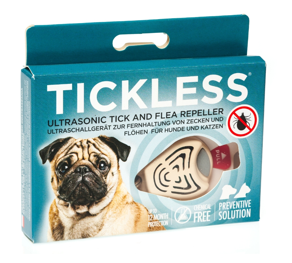 TICKLESS® PET ultraskaņas repelenta ierīce ērču un blusu atbaidīšanai. Bez ķimikālijām vai aromatizētājiem, drošs lietošanai jauniem, slimiem vai grūsniem dzīvniekiem. Ierīce izstaro ultraskaņas impulsus, kas ir nejūtami cilvēkiem vai dzīvniekiem, bet traucē ērču un blusu spējām orientēties telpā, piespiežot doties prom. Darbības diapazons ir aptuveni 1,5 metri.