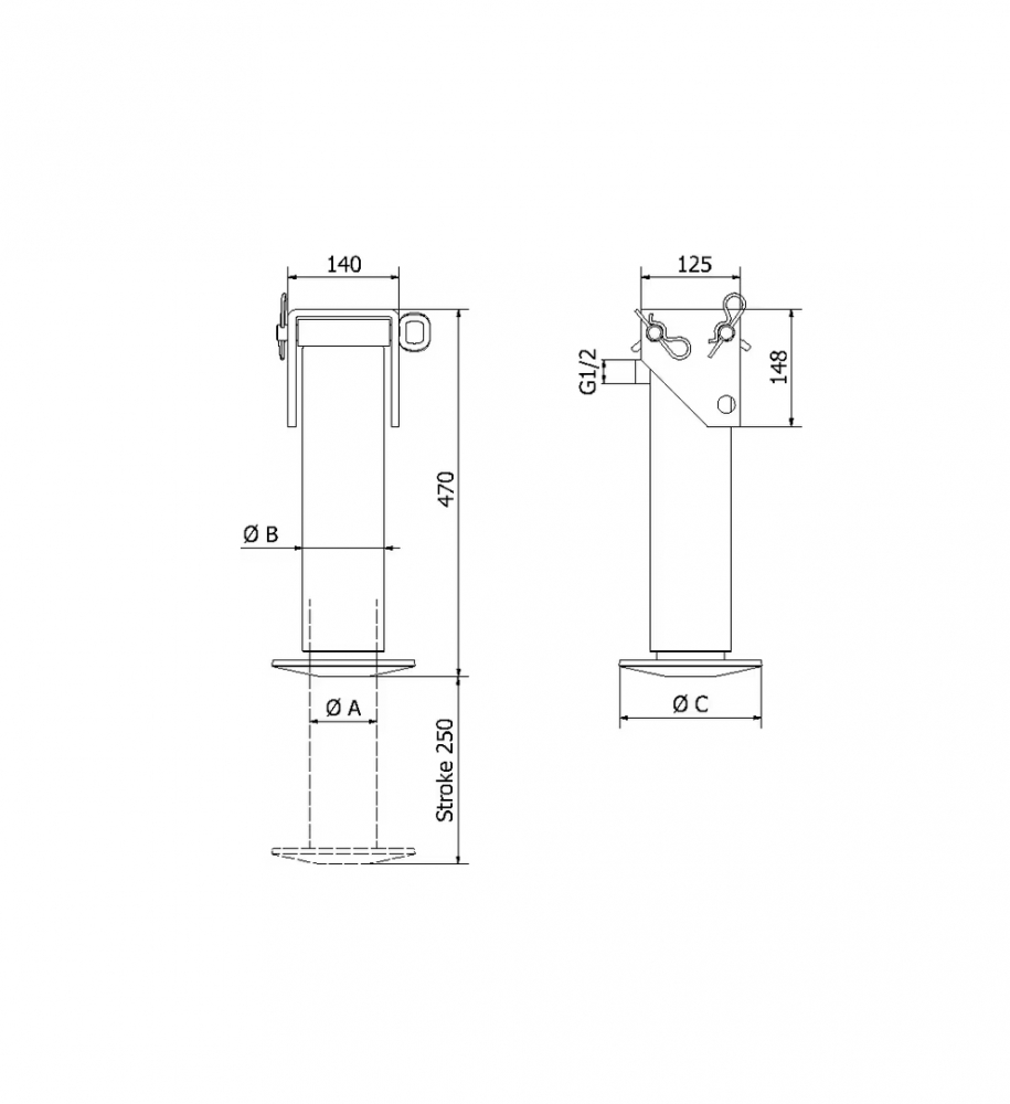 Cilindra garums bez stieņa - 470 mm