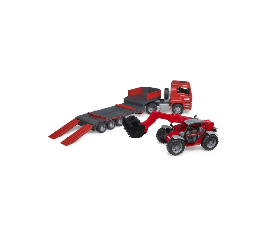 MAN TGA Zema profila kravas automašīna ar Manitou teleskopisko iekrāvēju MLT 633 BRUDER (02774)